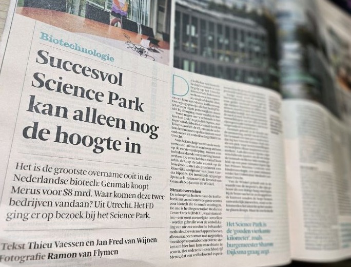 Naar aanleiding van de voorgenomen krachtenbundeling van de Utrecht Science Park-bedrijven Genmab en Merus, zijn er in diverse media mooie publicaties verschenen, waarin ook de kracht van het Utrecht Science Park-ecosysteem wordt uitgelicht. Zo werd in het Financieele Dagblad gesproken over het “biotech-powerhouse” en het belang van de groeimogelijkheden, zodat deze kennis in Nederland behouden blijft. Lees hier meer over dit vruchtbare ecosysteem voor innovatie. |